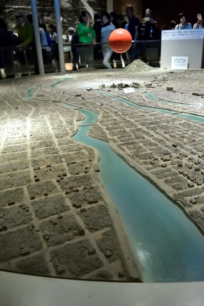 Inside the Hiroshima Peace Memorial Museum, there are artifacts recovered from the aftermath of the explosion. Melted bottles, walls with ashes forever burned into them, destroyed children’s toys, human hair and fingernails, and more. A giant 3Dish map has a ball hanging from the ceiling that shows exactly where the bomb exploded over Genbaku Dome. There was a ton of information on the event, the aftermath and the rebuilding of the city. The museum was small, but really intense.
