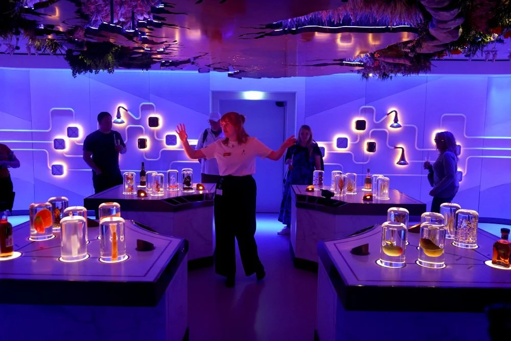We have done many distillery and brewery tours so we weren’t expecting this to be a vibrant, multi-sensory adventure… we were in for a surprise. From the moment you step through the doors, the energy is palpable. The Waiting Area is fully branded with lots of pre-tour photo/selfie opportunities. If you haven’t filled out your flavor profile in advance, they provide kiosks to get it done now. It’s the perfect prelude to what's to come, setting a sophisticated yet playful tone that carries through the entire visit.